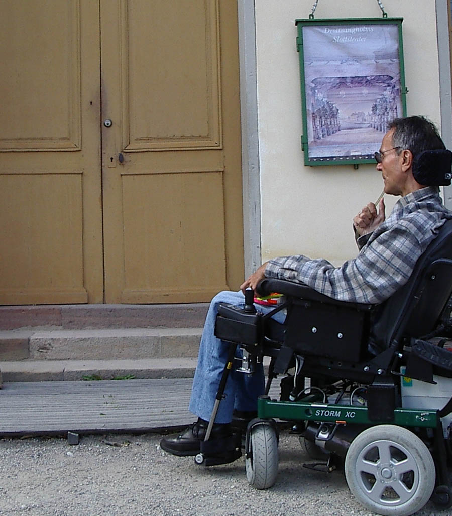 Drottningholms teater utanför Stockholm från 1776, UNESCO världsarv har trappor och varken ramp eller rullstolslyft eller anpassade toaletter. Se anmälan till Handikappombudsmannen